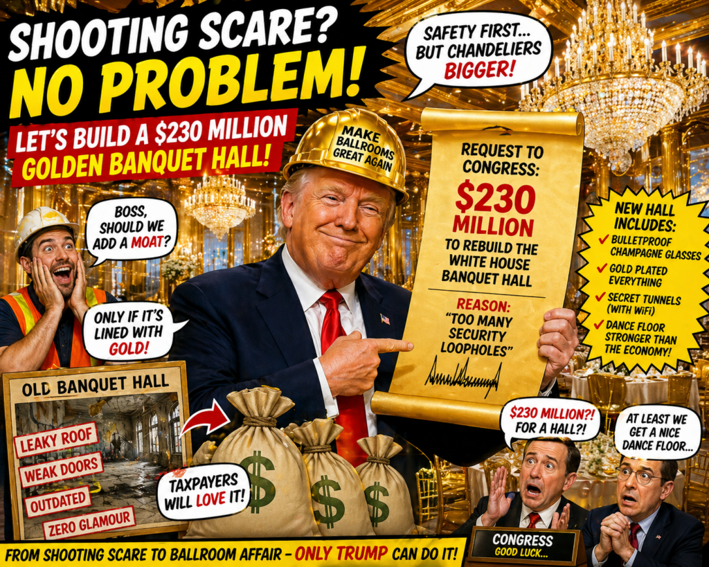Just when everyone thought the biggest story was the dramatic Trump shooting scare, Washington delivered a sequel nobody saw coming. Less than 24 hours after the chaos, Trump’s team reportedly marched into Congress with a bold new request: $230 million to rebuild the White House banquet hall.